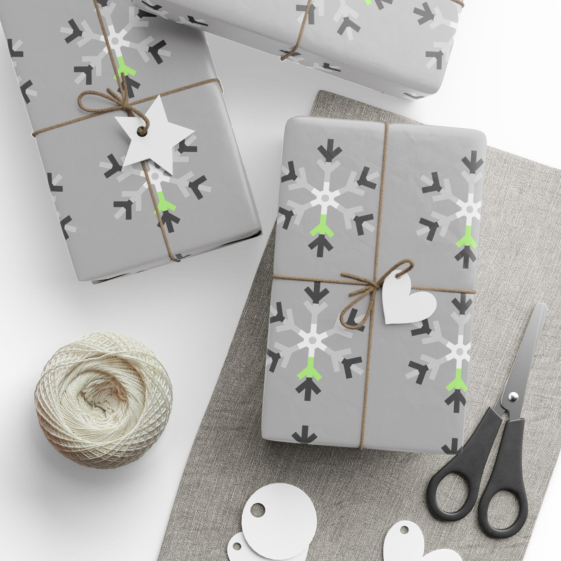 Agender Pride Flag Snowflake Wrapping Paper - Multiple Sizes/Finishes