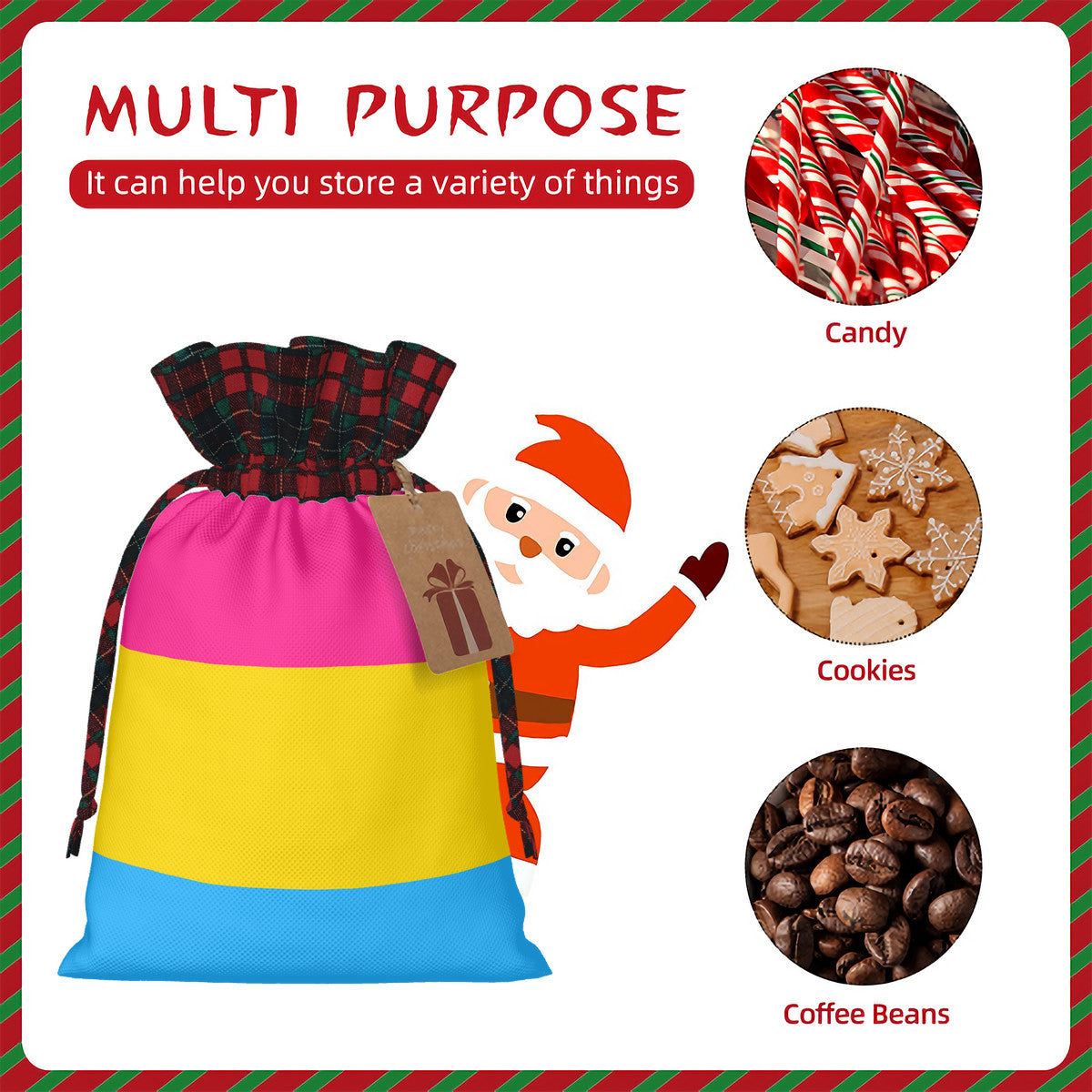 【Product Performance:】 Made from premium and eco-friendly burlap material, complemented by Scottish plaid fabric, this bag offers a refined and rustic texture while maintaining a lightweight design. It features a convenient drawstring closure and includes a kraft paper tag that not only elevates its quality but also provides a space for personalized messages. With a spacious main pocket, it's perfect for storing your gifts, everyday essentials, and more.